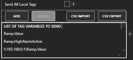 Choose to send all tag values from the local service on each broadcast or uncheck the property Send All Local Tags to define a list of tags from the local system, remote systems, and all variables.