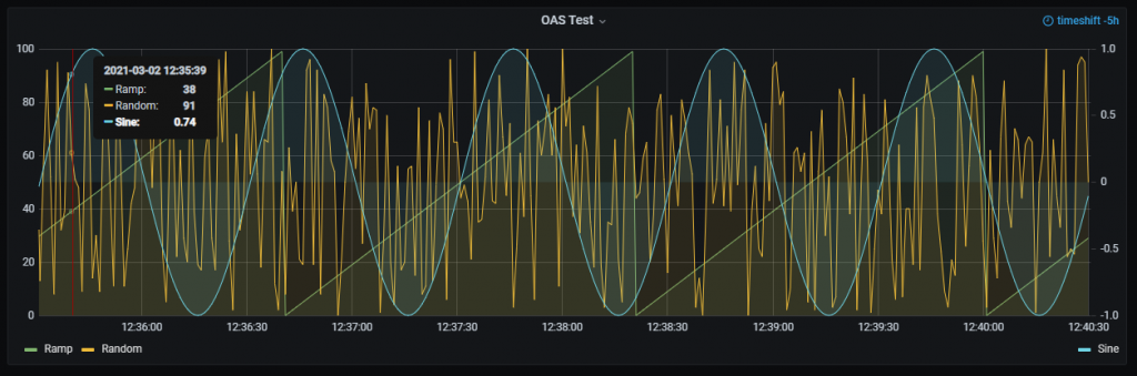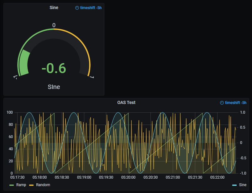 Grafana is a great tool for visualizing data coming from a database. But technically this is not real time data. However, the OAS platform provides access to real time data that is coming directly from the data source (PLCs, devices, applications, etc.) without the delay of hitting a database first.