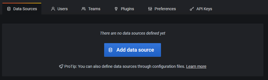In your browser, open up Grafana and log in. Then select Configuration > Data Sources to connect to your database.