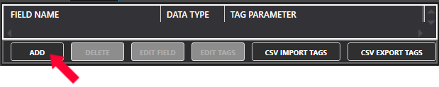 Add a data field and specify the Tag Parameter, field name, and field data type use the Add Button.